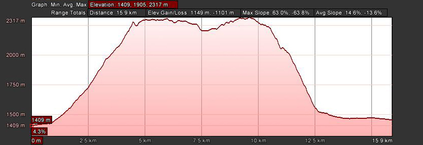 Monte Piana Hike Profile: 15.9 Km/9 miles with 1149 meters/3780 feet of climbing.