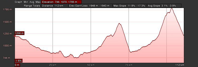 Auronzo Loop Road Bike Ride Profile: 118.0 Km/73 miles with 2814 meters/9258 feet of climbing.