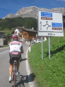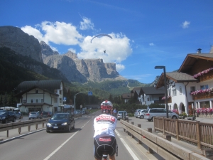 The descent from Passo Pordoi to Arabba is technical and fun with many switchbacks—some significantly tighter than others! After passing through Arabba we continue our rolling descent for the same 4 – 8 kilometers we added to the start.