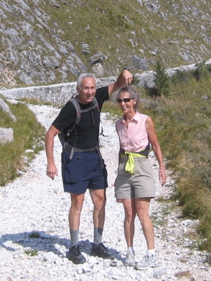 Clowning around while hiking the lower part of the Via Vandelli in the Alpi Apuane above Massa.